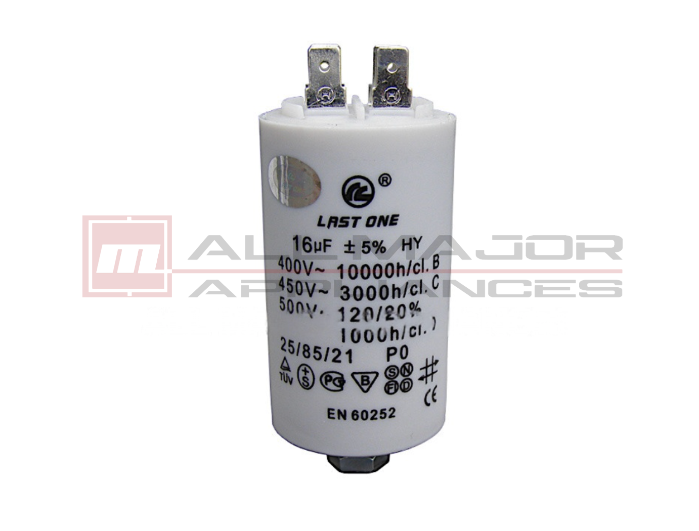 The LAST ONE 16µF Plastic Motor Run Capacitor is a durable industrial grade capacitor engineered for reliable and efficient operation in many applications (e.g. washing machines).